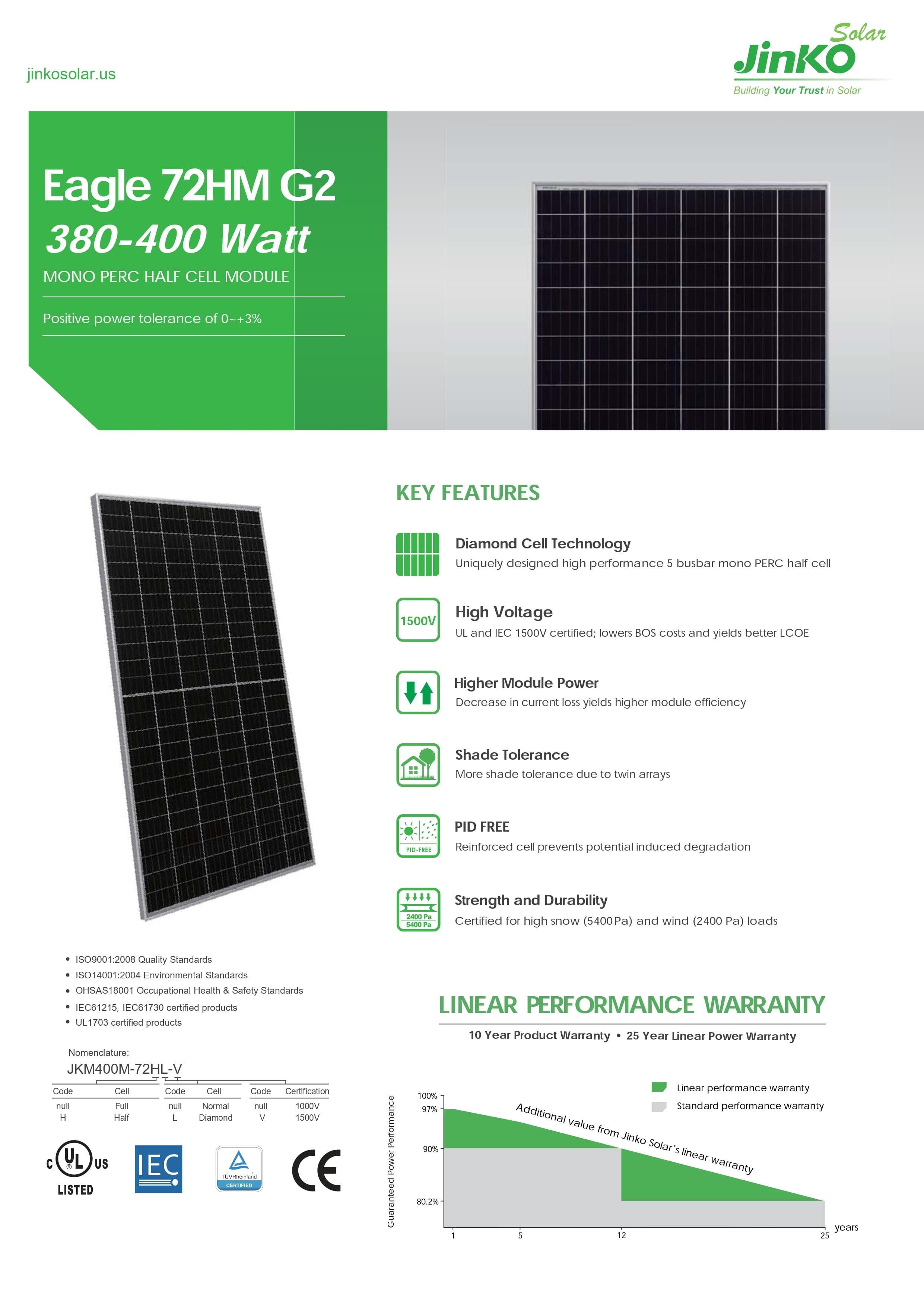 | Product Name and Model Number | 72HM G2 JKM400M |