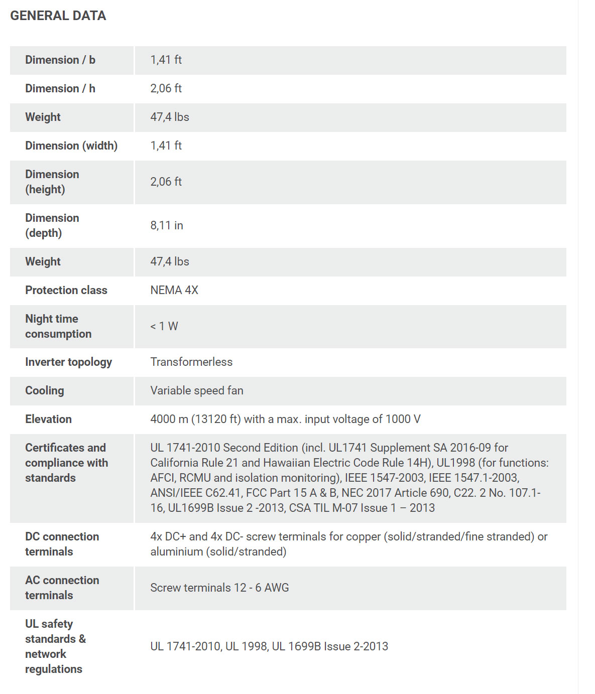 Dual powerpoint trackers, high system voltage, and a wide input voltage range, make the Fronius Primo a standout among string inverter options. This top pick also integrates Wi-Fi and SunSpec Modbus interface, to Fronius’ online mobile monitoring platform.